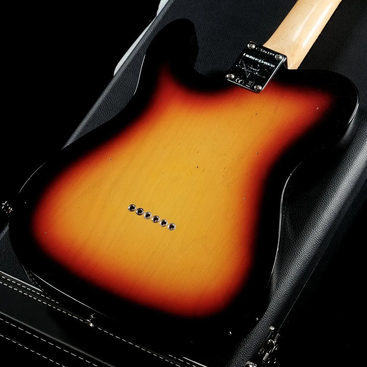Journeyman Relic Aged 3-Color Sunburst! This guitar features a two-piece alder body with a nitrocellulose lacquer finish and a quarter-sawn maple neck. The fingerboard is round-laminated rosewood. The neck shape is a ’63 Strat Style “C” with a 9.5-radius fingerboard radius. It features 21 narrow-tall 6105 frets. It features hand-wound Twisted Tele pickups from the Custom Shop. The controls are Modern Tele with Greasebucket.