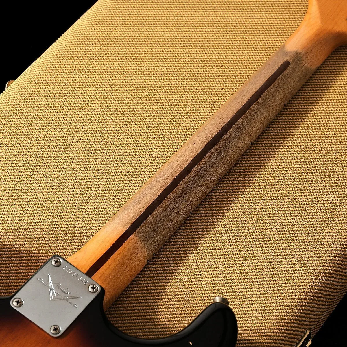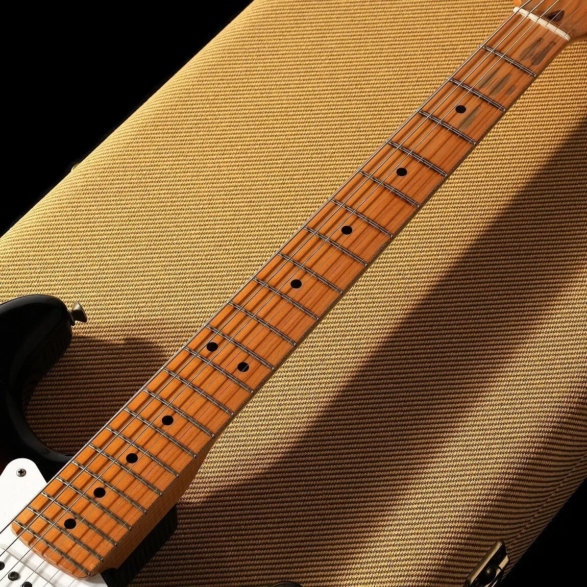 The 2017 Fender Custom Shop Eric Clapton Stratocaster Journeyman Relic 2-Tone Sunburst has arrived! This guitar features an ash body with a Journeyman Relic finish, a rare find for a Clapton model. It features a 2-Piece Select Ash body with a Lacquer finish and a Journeyman Relic finish. The neck is made of Rift Sawn Maple. The fingerboard has a 9.5R radius. The neck profile features a “Soft V” shape, which feels comfortable in your hand and allows for easy bending and vibrato. The frets are “Vintage-Style” with 22 frets. The tremolo block is secured with a piece of wood. This guitar, too, was Eric Clapton’s signature, featuring a synchronized tremolo system secured with a piece of wood, rather than a hardtail, to achieve his desired tone. The guitar features Vintage Noiseless Single-Coil Strat pickups, delivering a clear, low-noise sound. The controls include the familiar Clapton TBX tone control with low-cut and a mid-boost function for powerful, fat lead tones. This guitar offers a wide range of tone control at your fingertips. While there are some picking marks, buckle marks, and other nicks and dents, it’s in excellent playing condition. This Eric Clapton model features a rare ash body and a Journeyman relic finish. Highly recommended for fans and anyone looking for a versatile Strat that’s easy to use! The relic finish is beautiful and creates a lovely atmosphere. Don’t miss this opportunity!