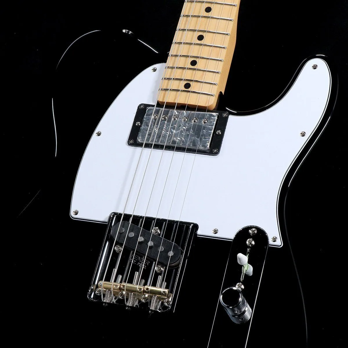 The ever-popular “50s Telecaster with front humbucker” is crafted in a black finish with a white pickguard!