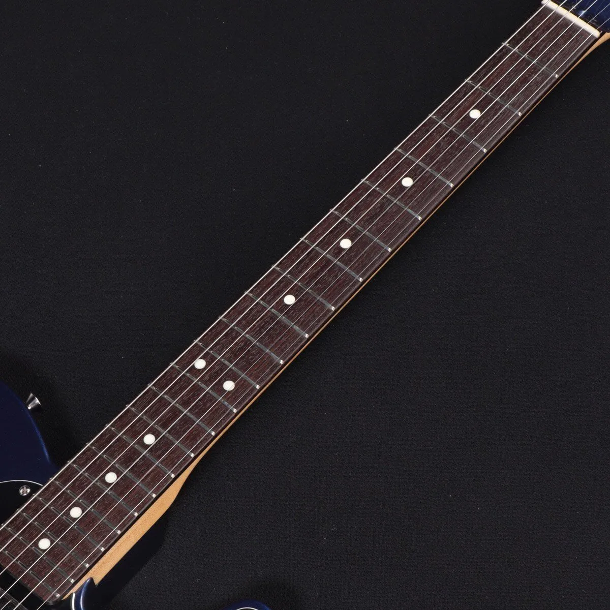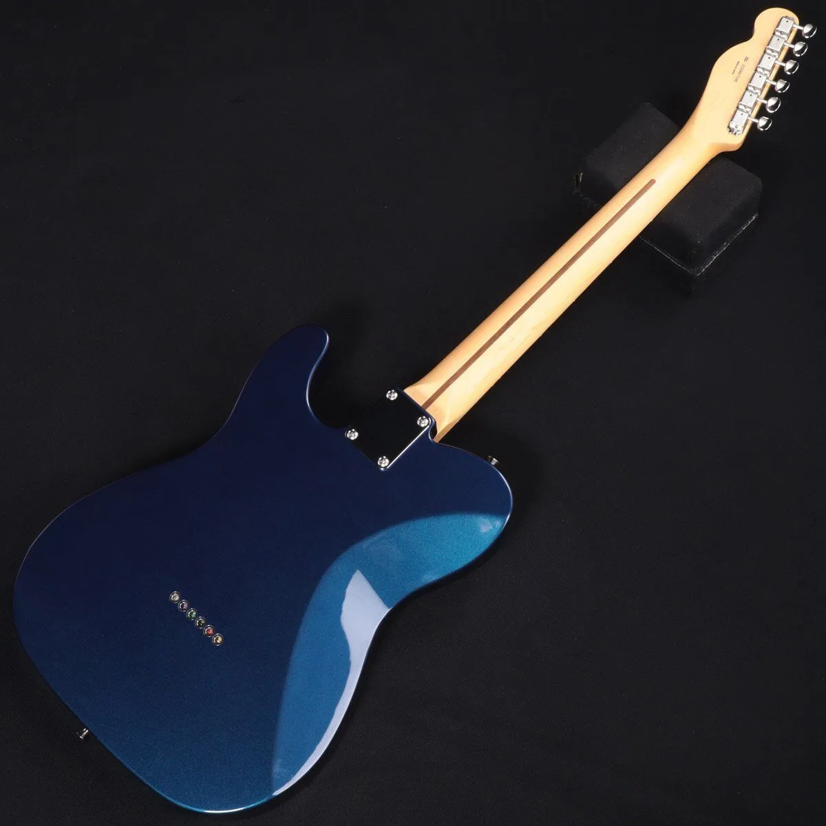 The combination of deep blue, named after the mineral “Azurite”, and black pickguard is very cool.