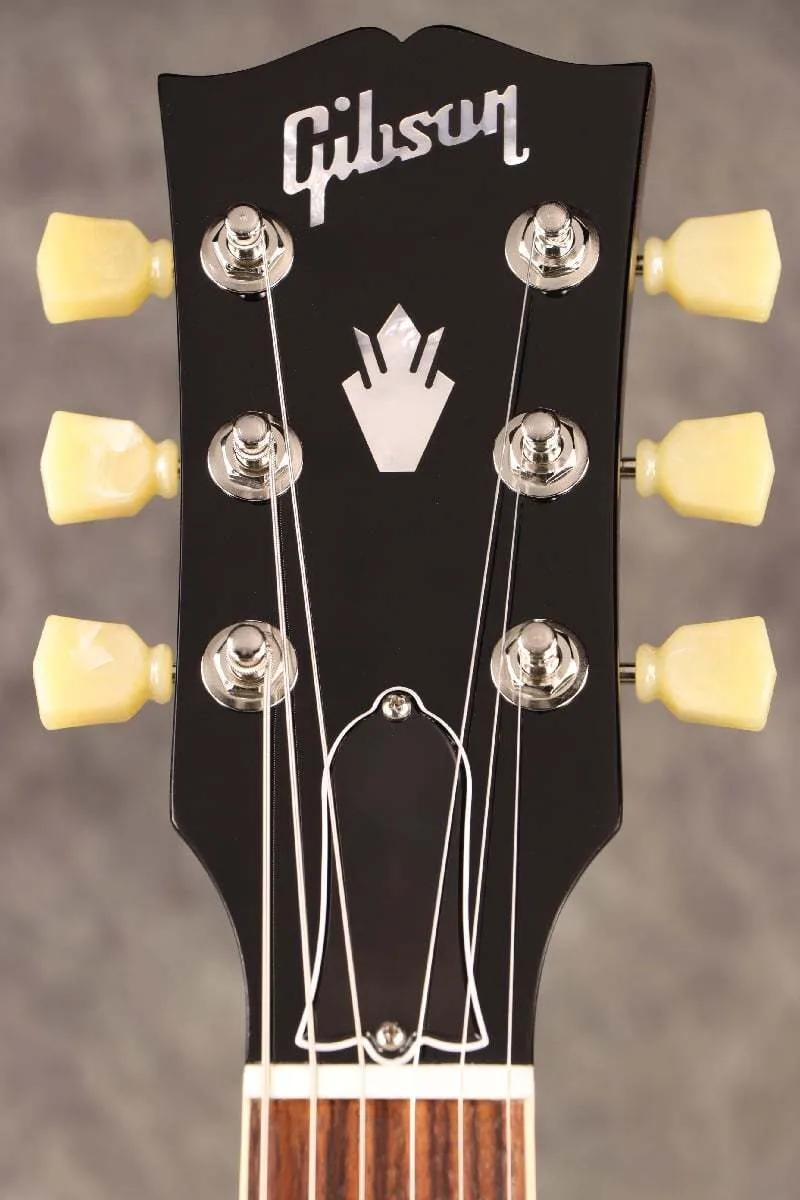 The Maestro Vibrola, featuring a distinctive lyre-engraved tailpiece, produces a smooth, retro vibrato.