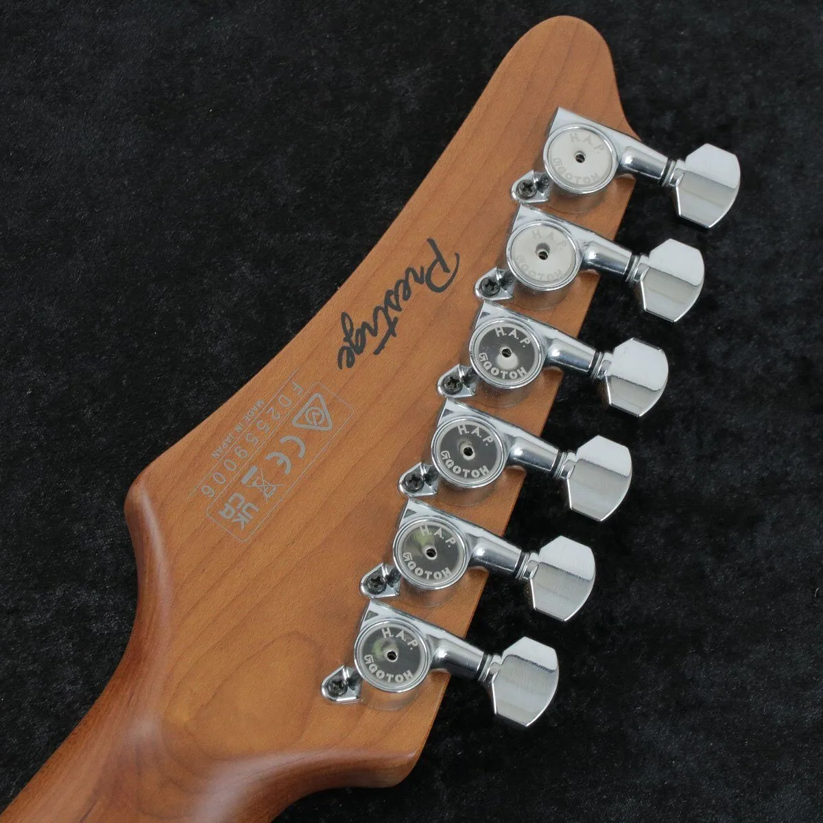 – Gotoh Magnum Lock machine heads with HAP function for adjustable post height.