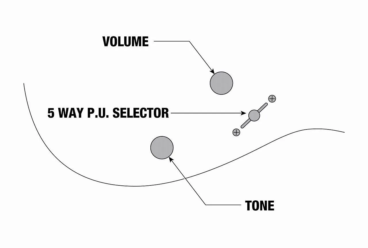 Bridge pickup: DiMarzio Evolution (H) bridge pickup, Controls: Pickup selector: 1 Volume, 1 Tone, 5-way lever switch