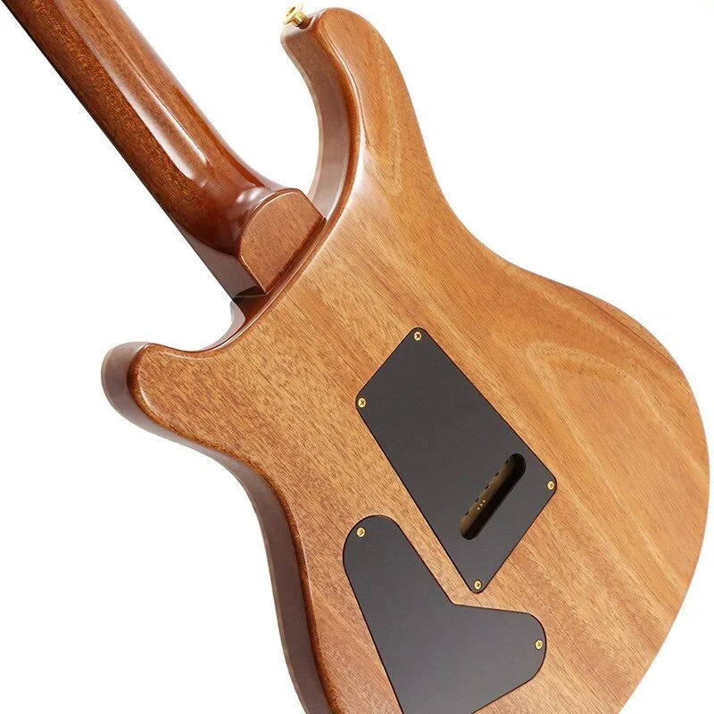 The body top features exquisite flame maple, carefully selected from the vast stock of woods in the PRS Wood Library for its exquisite grain. The appearance of the grain on the finished guitar changes dramatically depending on whether the front or back is used as the surface and the position of the body line. This expert selection ensures that the instrument retains the unique PRS beauty that continues to captivate guitarists, along with its sound. The body back is crafted from one-piece African mahogany. The combination of a maple top and mahogany back is a traditional specification that has been used in guitars from various brands since G’s LP model. For optimal sound quality, we specified the same dimensions as a McCarty, with a body back approximately 4mm thicker than the standard Custom. The thicker back contributes to a richer midrange and a fuller tone. The neck, finished in a patterned thin shape, is crafted from the same carefully selected mahogany as the body back.